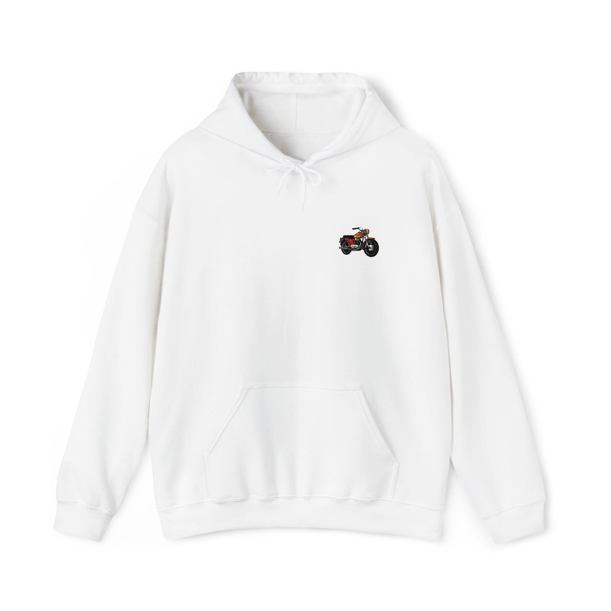 Unisex Heavy Blend™ Hooded Sweatshirt with Colorful Motorcycle Design, Perfect for Casual Outings, Gift for Bikers, Cozy Layering.